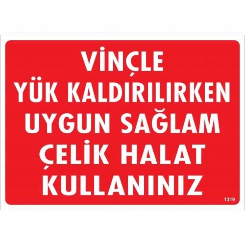 Vinçle Yük Kaldırırken Uygun Sağlam Çelik Halat Kullanınız Uyarı Levhası 25x35 KOD:1319