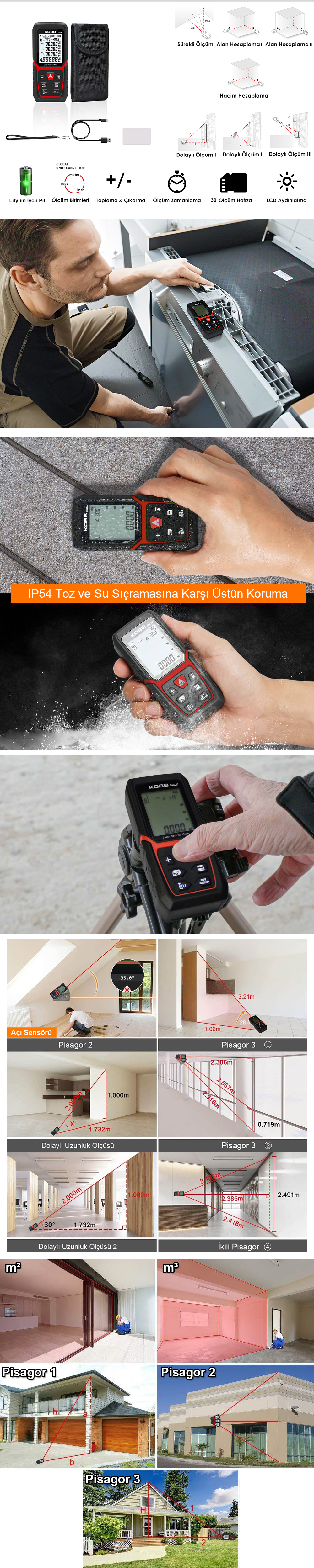 ·         KOBB KBL50 50m Profesyonel Li-ion Şarjlı Lazer Metre