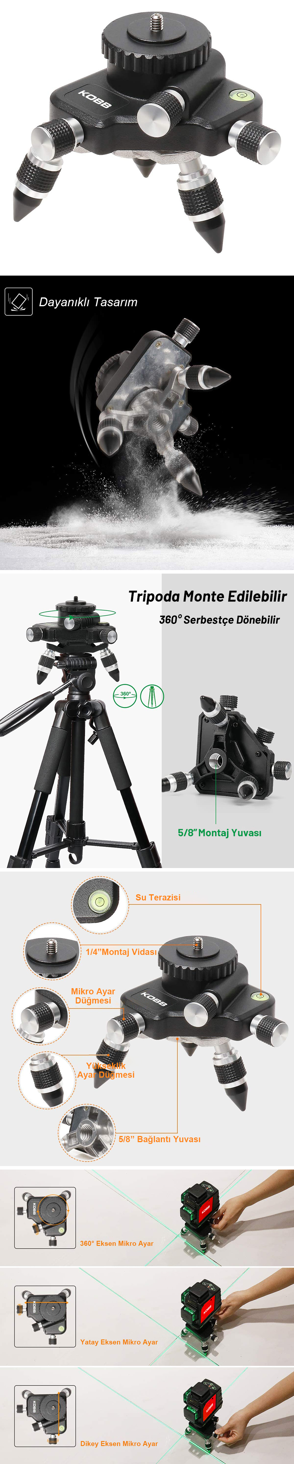 · KOBB KBL2 Üç Eksenli Hassas Ayarlanabilir Lazer Hizalama Tripodu