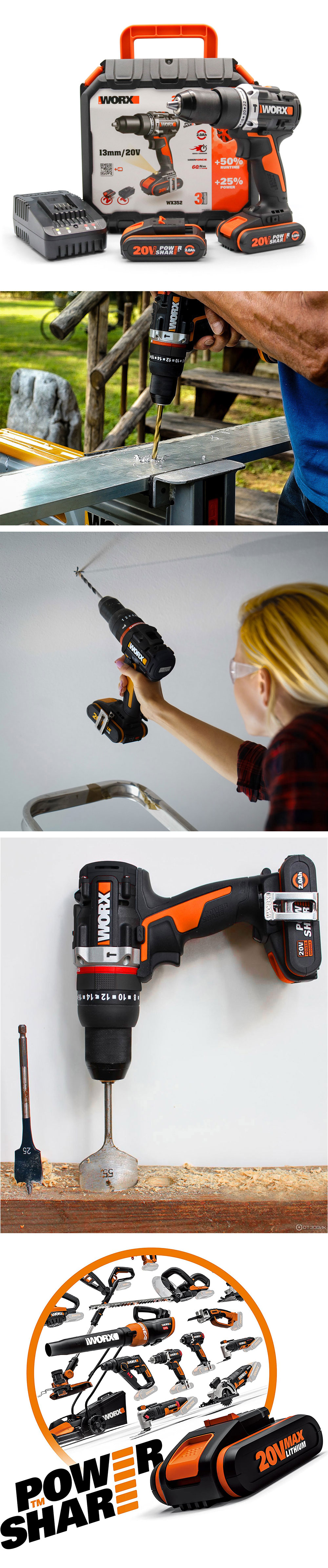 · WORX WX352 20Volt/2.0Ah Li-ion Çift Akülü Kömürsüz Profesyonel Şarjlı Darbeli Matkap