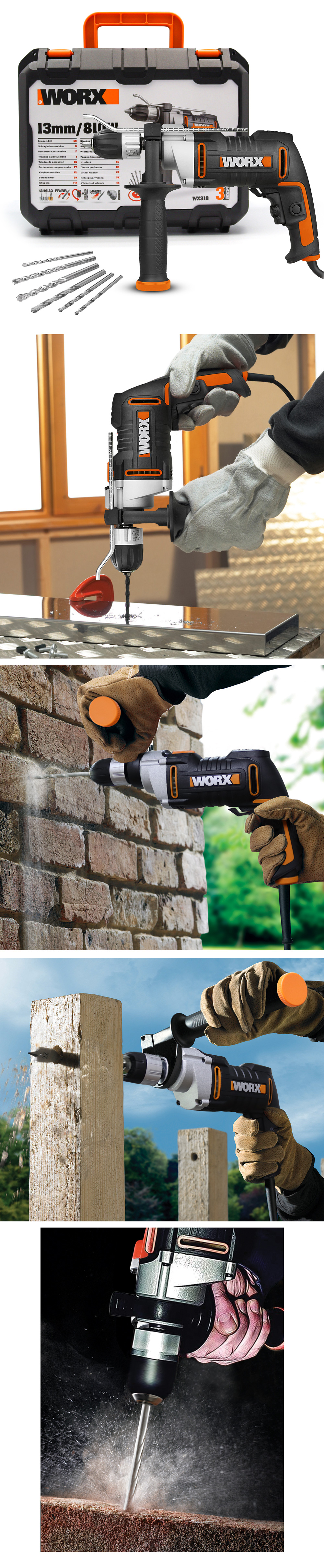 · WORX WX318 810Watt 13mm Profesyonel Darbeli Matkap + 6 Adet Uç