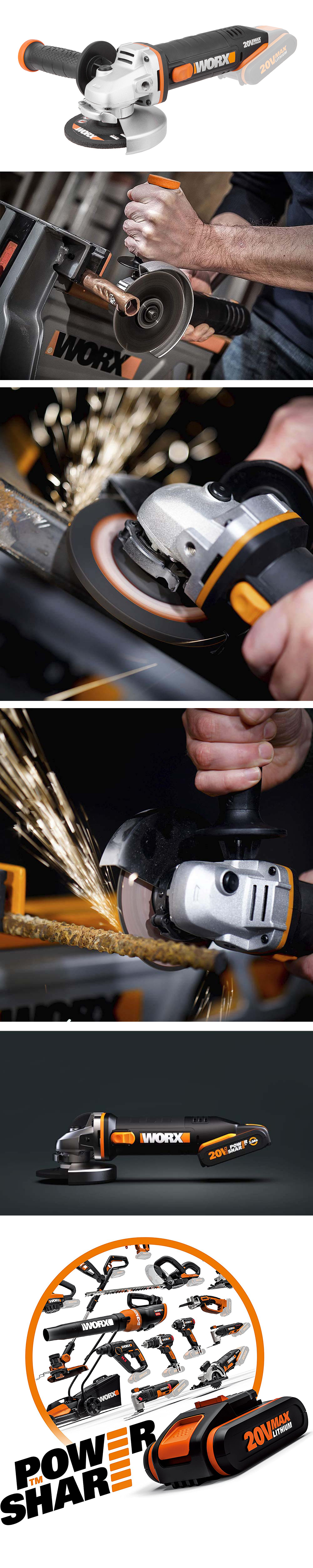 WORX WX800.9 20Volt 115mm Profesyonel Avuç Taşlama (Akü Dahil Değildir)