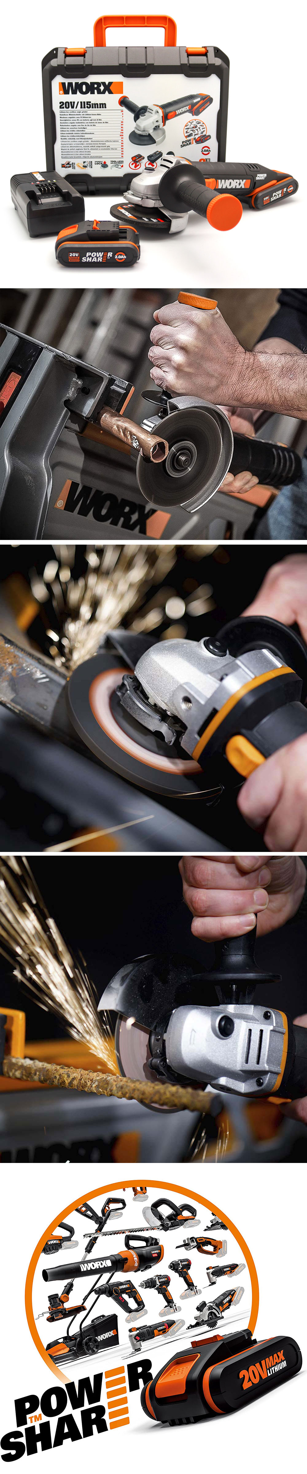 · WORX WX800 20Volt 2.0 Ah. Li-ion Çift Akülü 115mm Profesyonel Şarjlı Avuç Taşlama