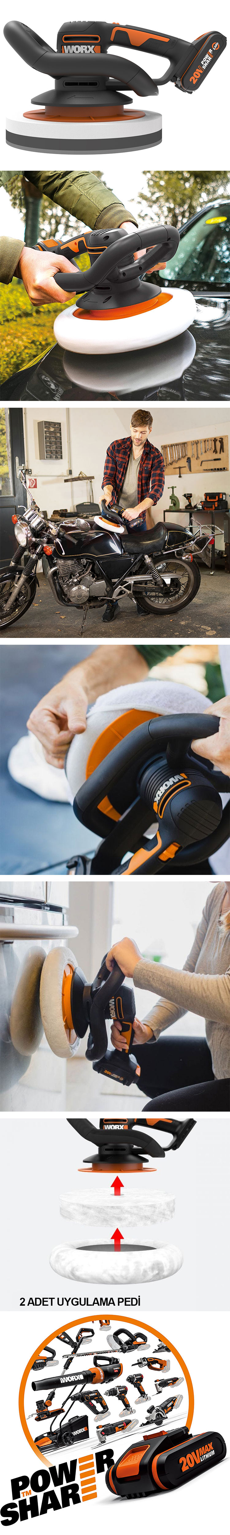· WORX WX856 20Volt 2.0Ah. Li-ion 254MM Şarjlı Orbital Polisaj Makinesi