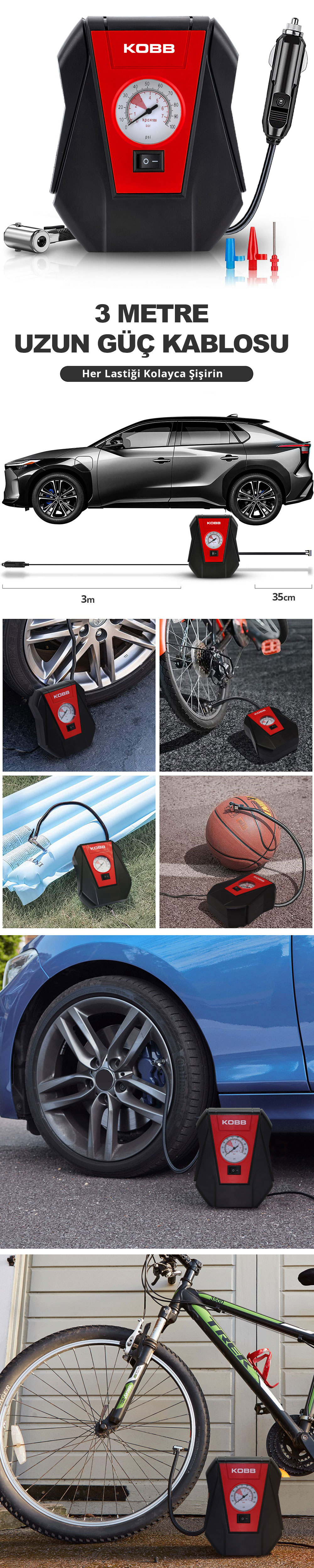 ·         Güçlü 100 PSI / 7 Bar şişirme gücü ile Otomobil, motosiklet, cip, bisiklet lastikleri, top, lastik bot, yatak vb. malzemeleri şişirmek için uygundur,
