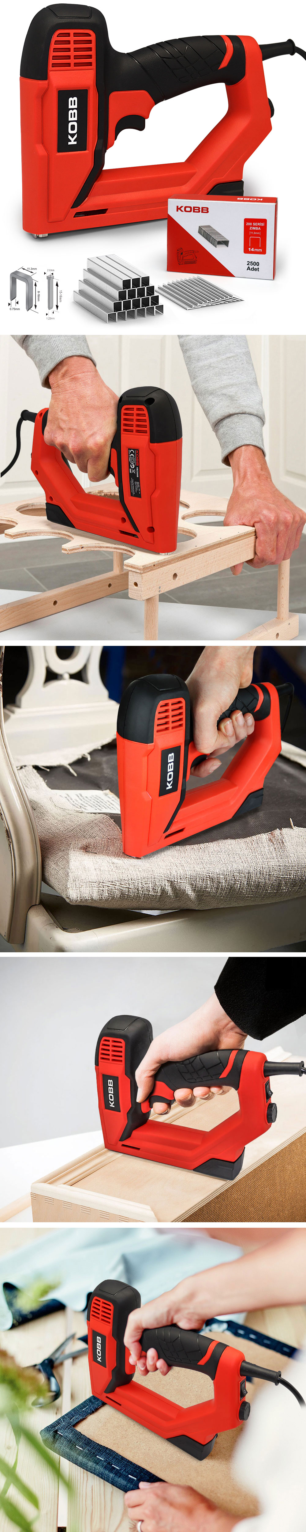 · KOBB KBZ200B 8-16mm Zımba ve 15-16mm Profesyonel Çivi Çakma Makinesi + 3000 adet Yedek Zımba ve Çivi