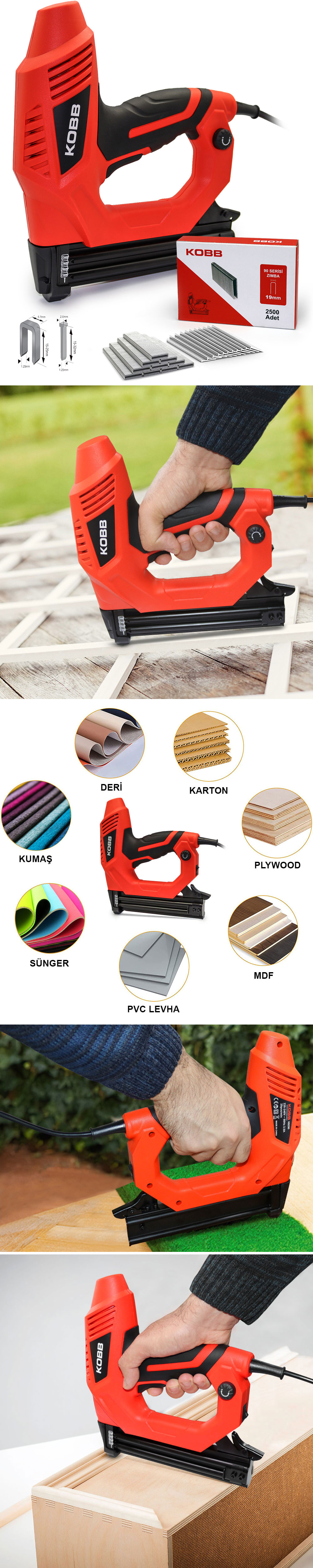 · KOBB KBZ90 15-25mm Zımba ve 15-32mm Profesyonel Çivi Çakma Makinesi + 3000 adet Yedek Zımba ve Çivi