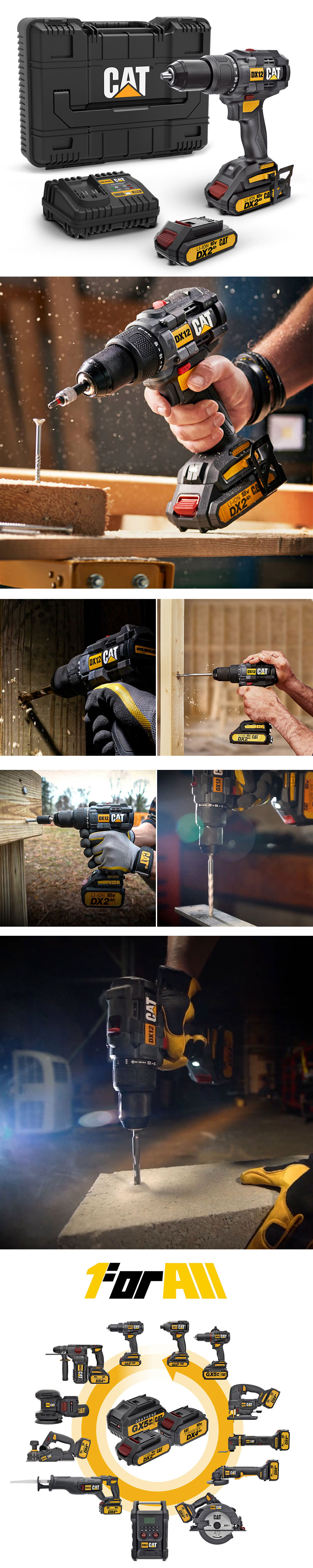 CAT DX12 18Volt/2.0Ah Li-ion Çift Akülü Kömürsüz Profesyonel Şarjlı Darbeli Matkap