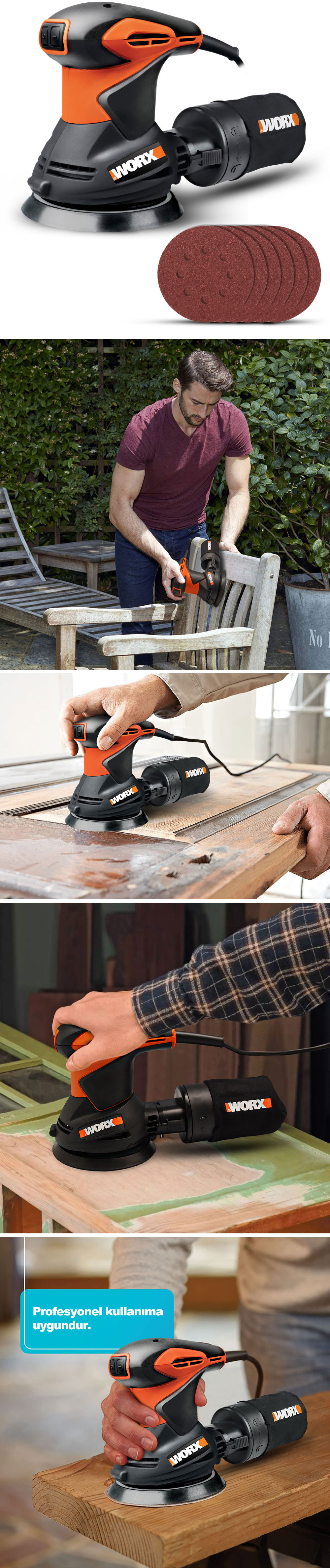 · WORX WX652.1 320Watt 125mm Profesyonel Eksantrik Zımpara