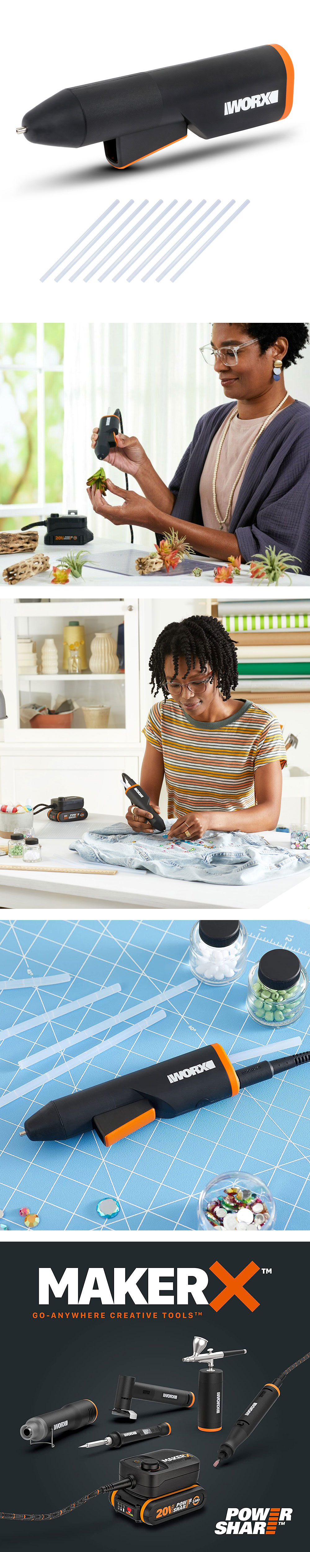 · WORX WX746.9 MAKERX 20Volt Profesyonel Sıcak Mum Silikon Tabancası + 10 Silikon (Akü Dahil Değildir)