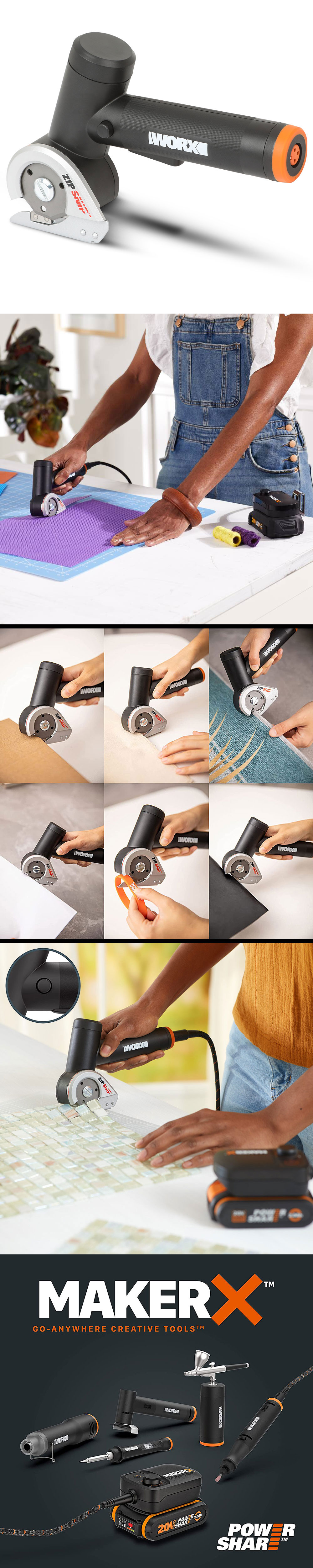· WORX WX745.9 MAKERX 20Volt Profesyonel 38mm Kumaş, Deri, Karton Kesici (Akü Dahil Değildir)