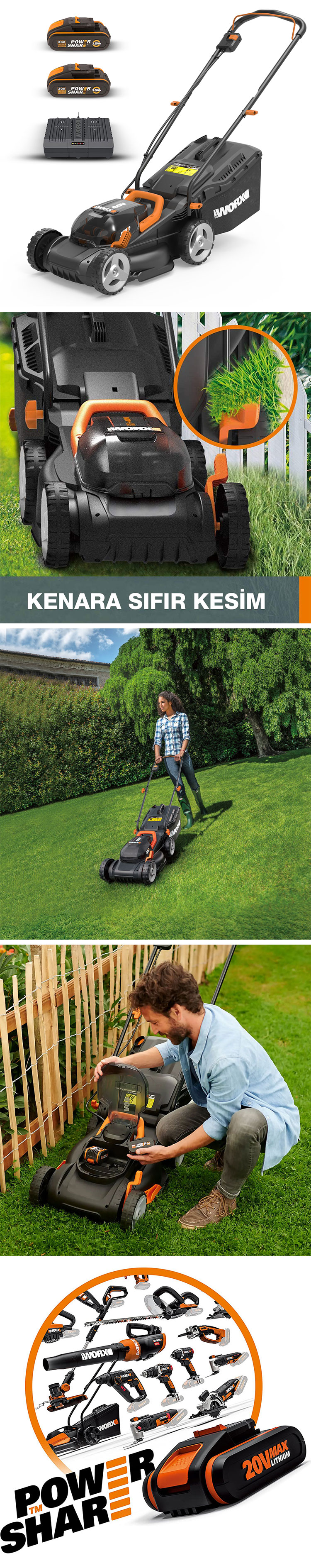 · WORX WG779E 40Volt 2.5Ah. Li-ion 34CM Profesyonel Şarjlı Çim Biçme