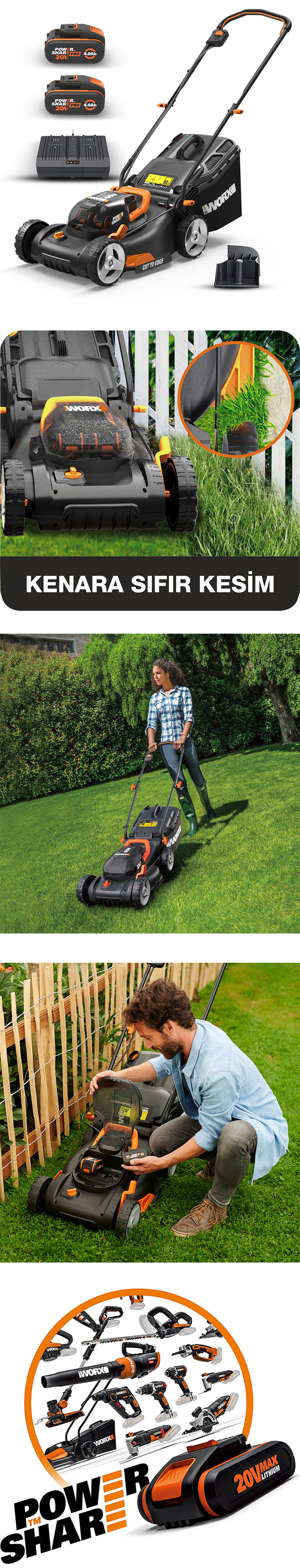 · WORX WG743E 40Volt 4.0Ah. Li-ion 40cm Profesyonel Şarjlı Çim Biçme