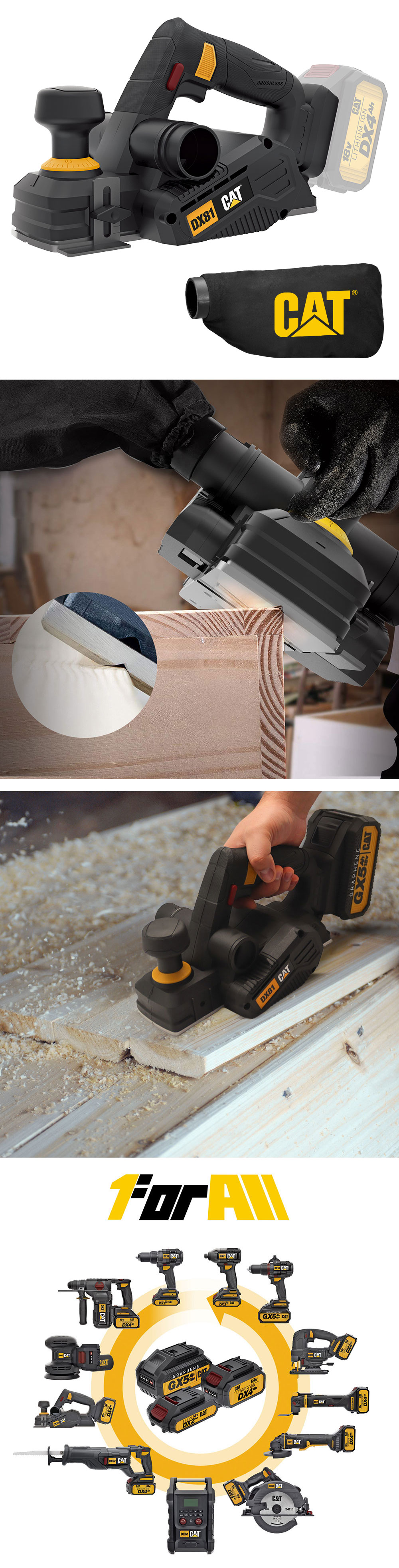 • CAT DX81B 18Volt 82mm Çift Bıçaklı Kömürsüz Profesyonel Planya (Akü Dahil Değildir)