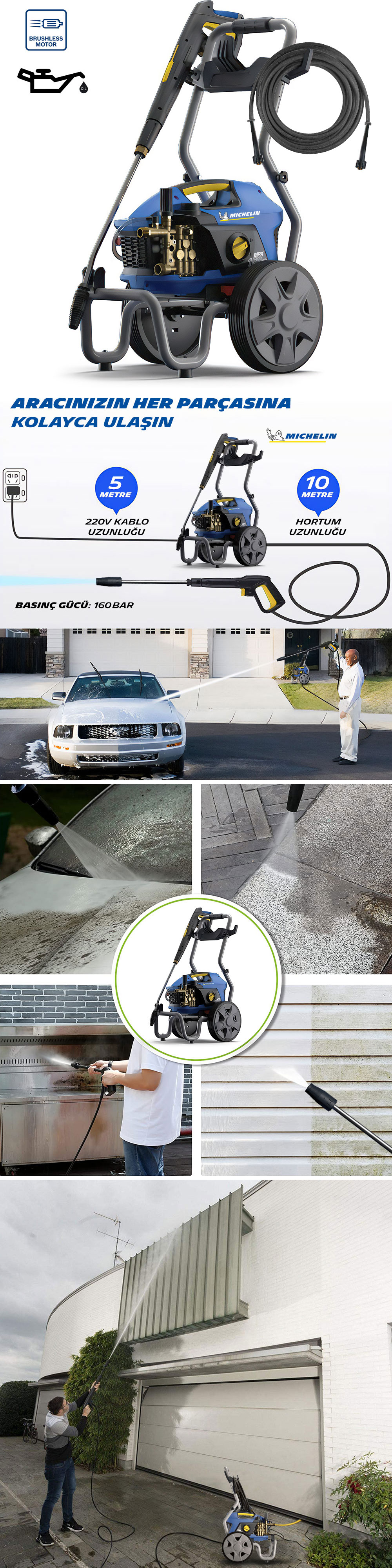 · Kullanımları son derece kolay Michelin Basınçlı Yıkama Makinenizi su sağlayacağınız yere bağlayın, musluğu açın, basınçlı yıkama makinesini çalıştırın ve temizleme işleminin keyfini çıkarın. Aşağıda listelediğimiz birçok alanda ve benzeri uygulamada Basınçlı Yıkamanızı profesyonelce kullanabilirsiniz.