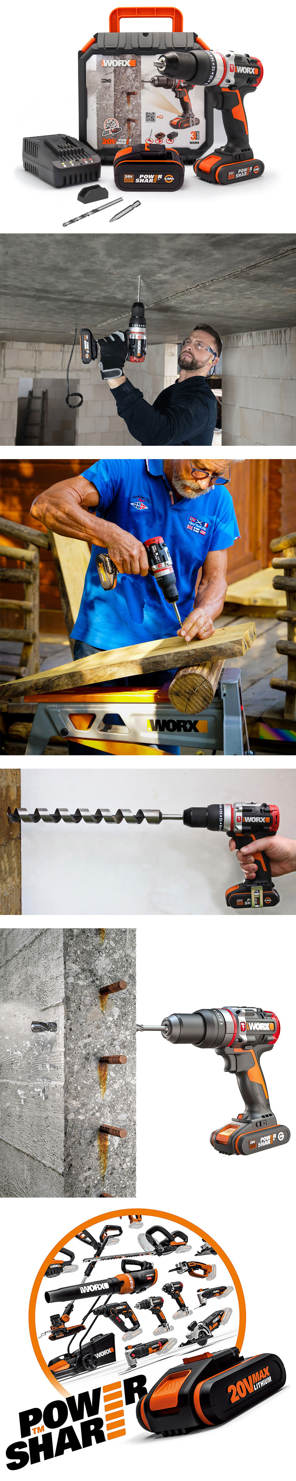 ·         Patentli Worx SLAMMER darbe teknolojisi sayesinde beton duvar ve tavanda yüksek performans ile hızlı ve kolay şekilde delme işlemi yapabilirsiniz.