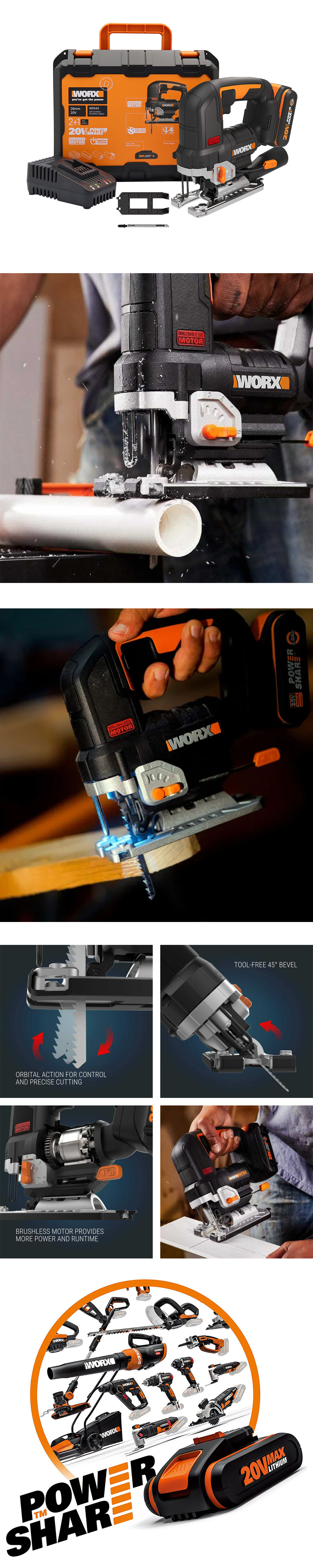 · WORX WX542 20Volt 2.5Ah. Li-ion Tek Akülü Profesyonel Kömürsüz Şarjlı Dekupaj Testere