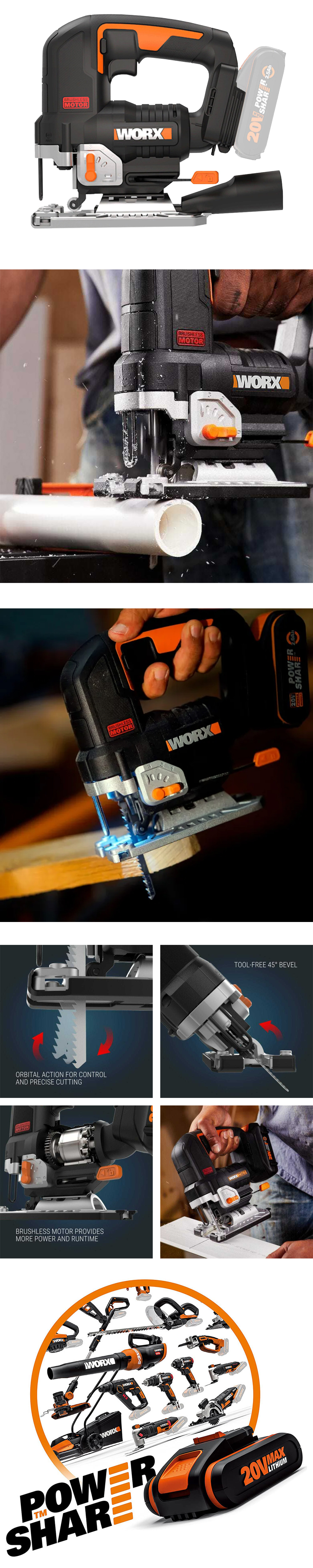 · WORX WX542.9 20Volt Profesyonel Kömürsüz Dekupaj Testere (Akü Dahil Değildir)