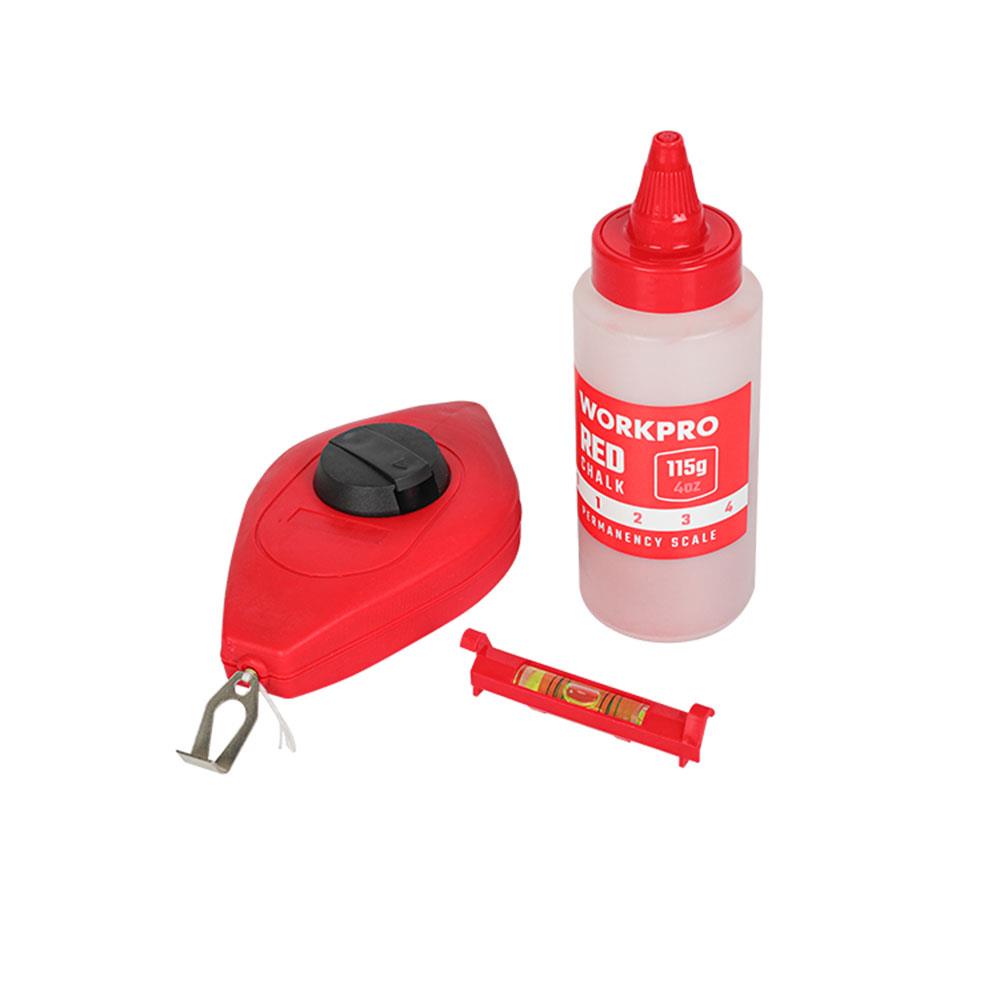 • WORKPRO WP329019 Çizim İpi Seti 115gr Kırmızı Çizim İpi Boyası + Mini Su Terazisi + 30M Çizim İpi